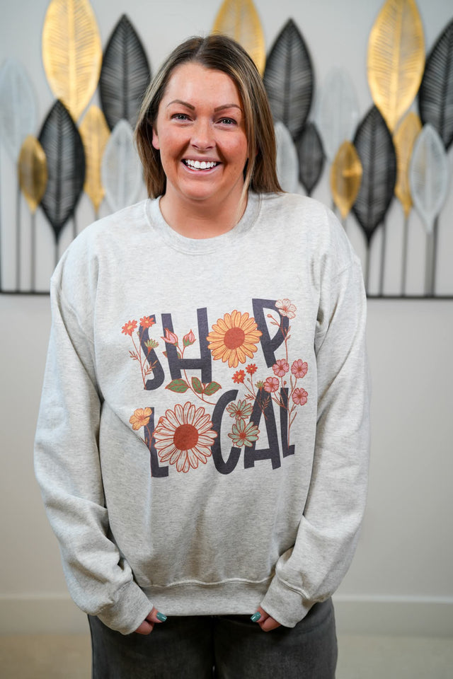 Support small and local businesses in style with our "Shop Local Floral" Sweatshirt. This design is exclusive to Bad Addiction Boutique!